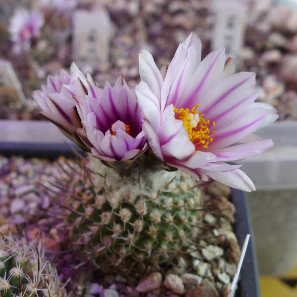 Prvé začali kvitnúť Turbinicarpus schmiedickeanus a tiež aj jeho varianta rubriflorus (MZ449 a VM805). Prekvapením bolo aj dostatok peľu, či bol klíčivý to sa uvidí časom. Veľmi zaujímavý klon Turbinicarpus viereckii.